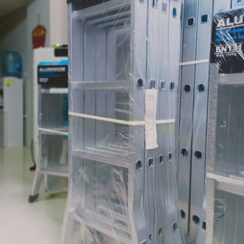 – Bậc thang được đột dập 3 lần chắc chắn: Bậc thang được làm từ hợp kim nhôm rất tỉ mỉ và bắt bắt mắt,với việc được dột 3 lần thì càng chắc chắn và làm cho thang có thể chịu được trọng tải lên tới 150kg, một mức trọng tải quá tốt với một chiếc thang nhỏ gọn