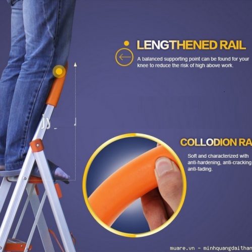 Khoảng cách giữa hai chân thang có kích thước rộng, có thể đứng vững chắc mà không cần người giữ. Thang ghế gia đình Ninda NDI-03 sử dụng như thang chữ A, leo một phía và tích hợp tay vịn chắc chắn. Thích hợp dùng trong gia đình, nhà kho, siêu thị…