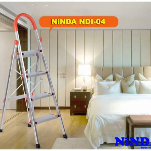 Thang ghế INOX 4 bậc NINDA -ND04 chiều cao hiệu quả cho công việc.