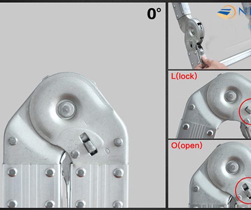 – Thang gấp sử dụng khóa lẫy sập tự động – khi mở đến cữ tự động sập lại.