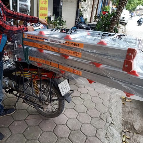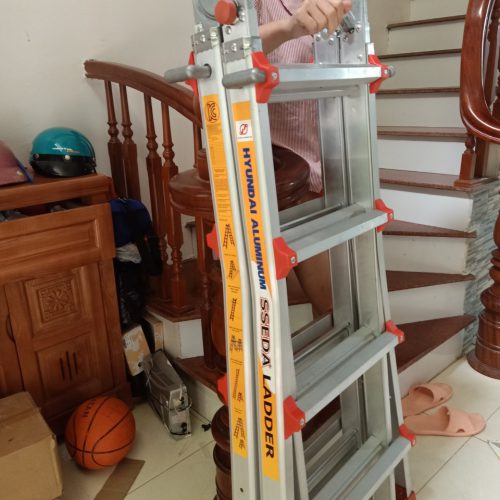 – Là thang nhôm rút đa năng, Huyndai LS – 44 có khả năng gấp rút gọn gàng lại chưa đến 1 mét giúp bạn không phải đau đầu khi tìm chỗ cất thang cũng như rất tiện lợi khi vận chuyển bằng xe máy đến nơi làm việc.
