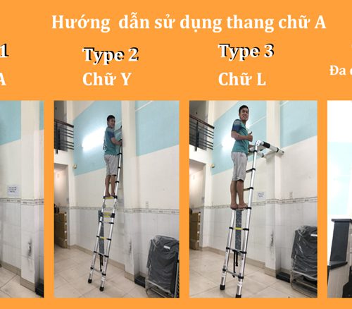 Tất cả các dòng sản phẩm thang nhôm rút đôi đều có thể sử dụng dạng chữ L, một chân tỳ vào tường như hình bên dưới. Dạng chữ L sử dụng trong trường hợp có vật chắn phía dưới làm bạn không thể sử dụng dạng chữ A hay dạng duỗi thẳng dựa tường. Với dạng sử dụng này, bạn có thể tùy chỉnh độ cao mong muốn bằng cách duỗi thêm hoặc thu bớt một số ống thang sao cho phù hợp.